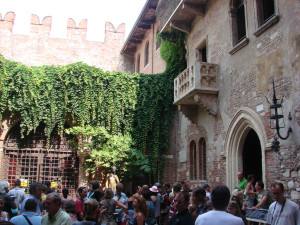 Immancabile un tour nella città scaligera tra i vecchi quartieri medievali, fin sotto al famoso balcone in via Cappello al 23. Un tempio di messaggi d’amore, scritti o incisi su tutte le mura del giardino in tutte le lingue del mondo, è ancora oggi Casa Capuleti, meglio nota come Casa di Giulietta, in un palazzo che risale al XIII secolo, probabilmente di proprietà della famiglia Dal Cappello, di cui resta uno stemma scolpito in un arco interno (tel. 045.8034303). Restaurata nel 1935, è aperta al pubblico e custodisce affreschi, ceramiche rinascimentali, antichi camini, scale in legno e un cortile in cui si può incontrare l’amata opera di bronzo di Nereo Costantini, la statua di Giulietta. E poi c’è una curiosità: qui ancora oggi l’associazione “Club di Giulietta” (via Galilei 3) legge e risponde a tutte le lettere (più di 4000 all’anno) di innamorate insicure o preoccupate in cerca di risposte dalla famosa fidanzata letteraria, che rivive grazie alle segretarie-volontarie che offrono un supporto morale a tutti gli innamorati del mondo e organizzano mostre, premi e spettacoli in tema amoroso.