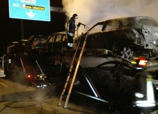 Terni, bisarca a fuoco su E45: distrutto carico di auto
