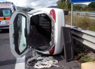 Terni, incidente sul raccordo, auto si ribalta: uomo ferito lievemente
