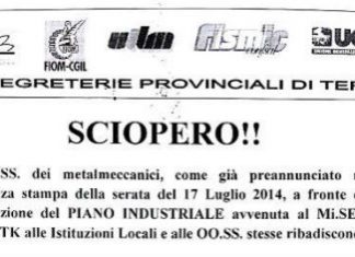 Ast, netta contrarietà dei sindacati al piano industriale Tk, proclamato sciopero e manifestazione