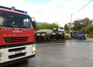 Terni, camion finisce fuori strada e si ribalta: lievi ferite per il conducente