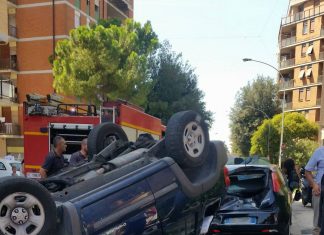 Terni, incidente in via XX Settembre: scontro all’incrocio, jeep si ribalta e finisce su auto parcheggiata