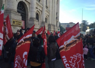 Terni, sciopero dei lavoratori della grande distribuzione, presidio sotto prefettura