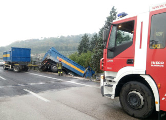 Terni, tir fuori strada in E45, motrice resta sospesa nel vuoto su viadotto