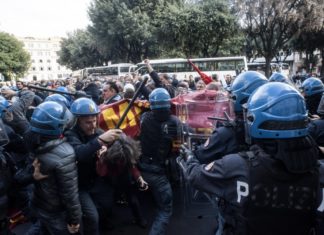 Ast, scontri a Roma, il video di un poliziotto che prende a pugni gli operai
