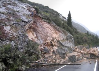 Frana sulla strada provinciale dell’Aia, operai al lavoro, viabilità interrotta nel tratto interessato