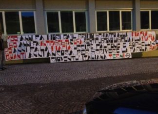 Striscione di Gioventù Italiana su muro del tribunale per commemorare Falcone, sequestrato da carabinieri