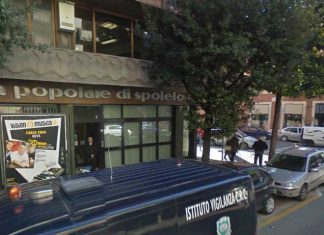 Rapinata la filiale della Banca di Spoleto in viale della Stazione, banditi armati di pistola