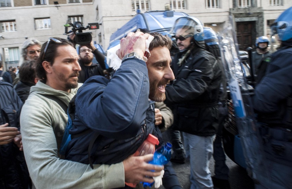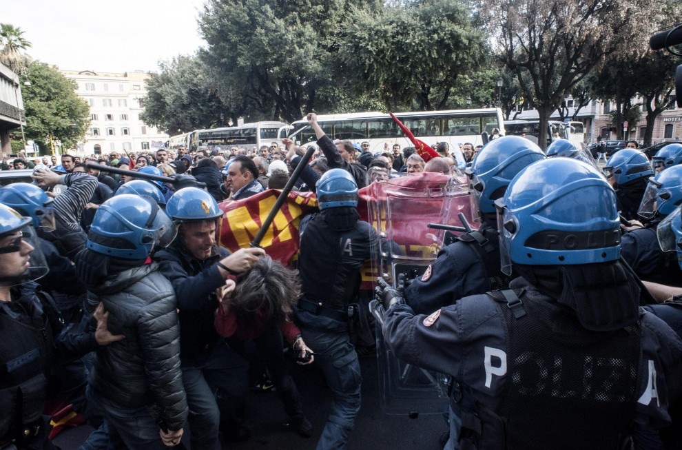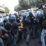 Aggiornamento ore 18,50: SAP DIFENDE OPERATO POLIZIA “Tutti i poliziotti italiani si aspettano una netta presa di posizione dei vertici del Dipartimento della Pubblica Sicurezza in loro difesa: un silenzio equivarrebbe a considerare ancora una volta tutti gli agenti dei ‘cretini'”. E’ quanto afferma dopo gli scontri di stamattina il segretario del Sap Gianni Tonelli, sostenendo che i disordini ci sono stati “perché qualcuno all’interno della manifestazione, probabilmente esasperato, è andato al di là del consentito e ha reso necessaria una carica d’alleggerimento”.