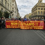 Aggiornamento ore 15,50: QUESTURA DI ROMA La questura di Roma aggiunge dei dettagli alla propria versione dei fatti e comunica: “Volevano andare verso la stazione Termini e occupare lo scalo romano, hanno forzato il cordone delle forze di polizia e per questo c’è stata una carica di contenimento. Nel tentativo di creare un corteo non autorizzato verso la Stazione Termini sono stati tirati oggetti contro le forze dell’ordine e un funzionario e tre agenti di polizia sono rimasti feriti”.