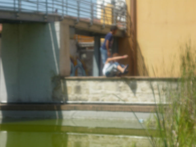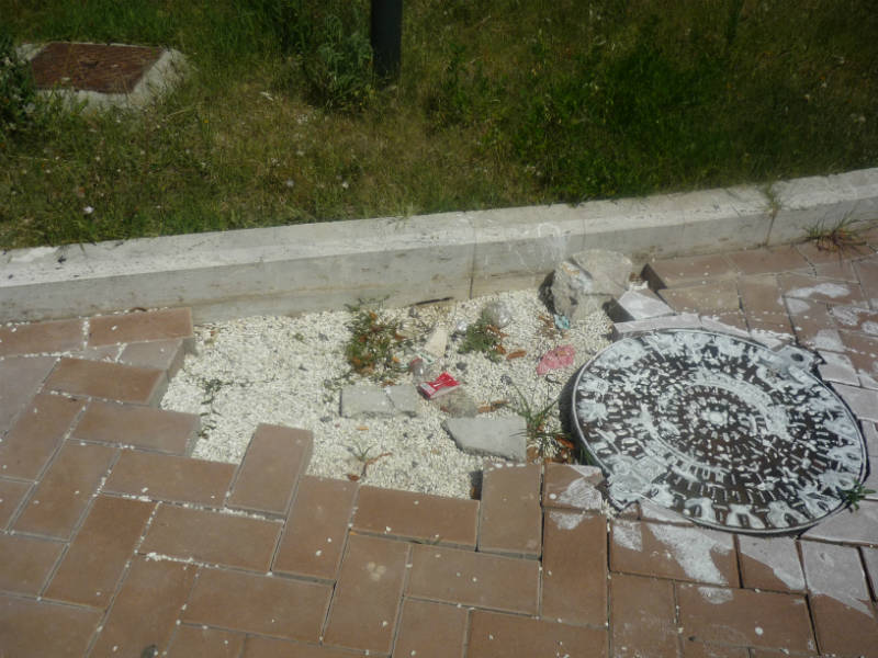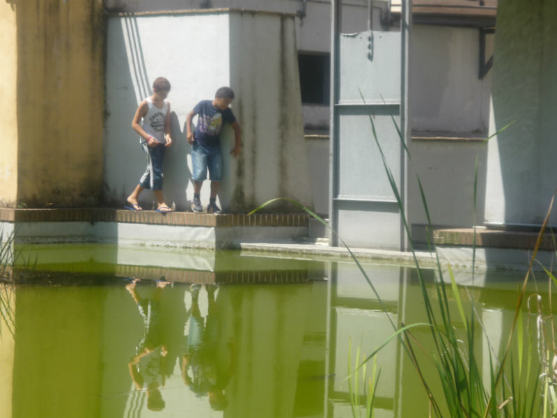 Anche l’esterno del Caos ha quindi finalmente eguagliato lo squallore degli spettacoli che si organizzano al suo interno , ma non si preoccupi, non voglio fare polemiche oggi lasci pure tutto cosi come è, i rifiuti, l’acqua putrida, la vegetazione selvatica che traborda dalle aiuole, la pavimentazione devastata, i muri scrostati , gli alberi mozzati, il tutto è veramente un CAOS, le chiedo solo di attivarsi con misure idonee affinchè sia impedito a ragazzini ed adolescenti di arrampicarsi agevolmente sui manufatti che delimitano le pozze nauseabonde piene di rifiuti, rischiando la propria vita come dimostrano i due ragazzini ritratti nelle foto che le allego.