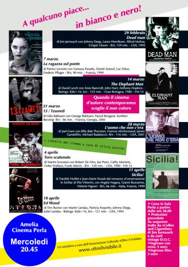 In concomitanza con il ritorno in auge del bianco e nero grazie al lungometraggio “The Artist” ancora in sala, l’associazione “Oltre il Visibile” propone, da Mercoledì 29 Febbraio 2012 fino a Mercoledì 18 Aprile 2012, al cinema Perla di Amelia, la rassegna cinematografica “A qualcuno piace…in Bianco & Nero! Quando il cinema d’autore contemporaneo sceglie il non colore“.