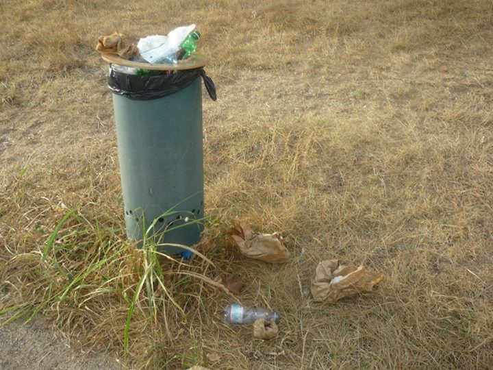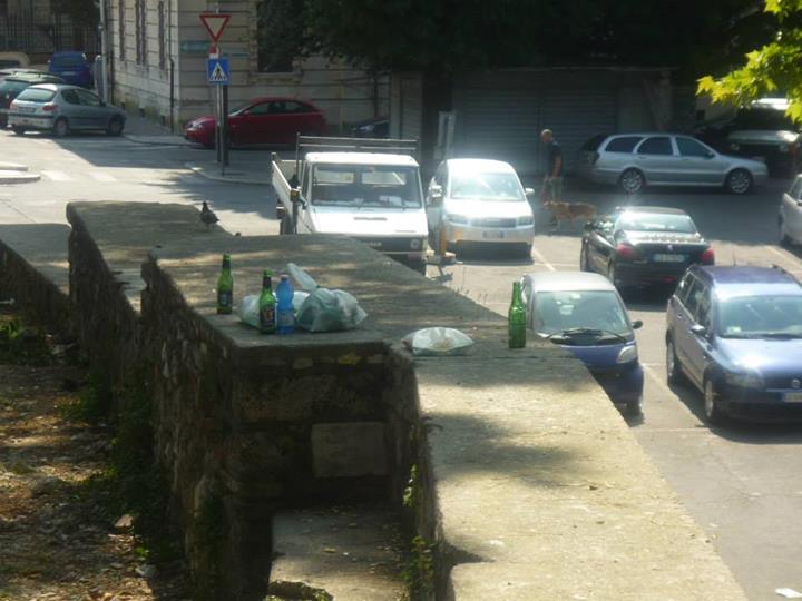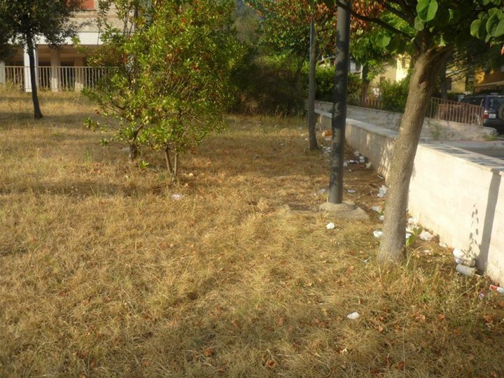 Cestini stracolmi ed erba completamente secca completano il quadro desolante visibile ad occhio nudo anche dalle finestre della residenza dell’assessore (sic!)