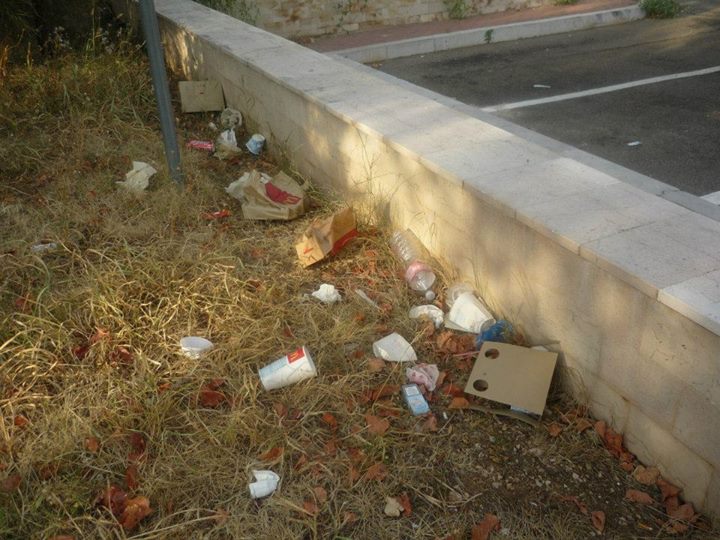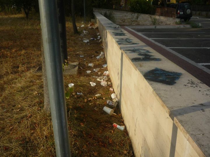 Siamo partiti dal quartiere dove ha la residenza l’assessore all’Ambiente Luigi Bencivenga e con nostro grande stupore si è palesato davanti ai nostri occhi un tappeto di cartacce e bottiglie di vetro e plastica, alcune delle quali ormai fanno bella mostra di se fra le piante perfettamente integrate nell’ambiente.