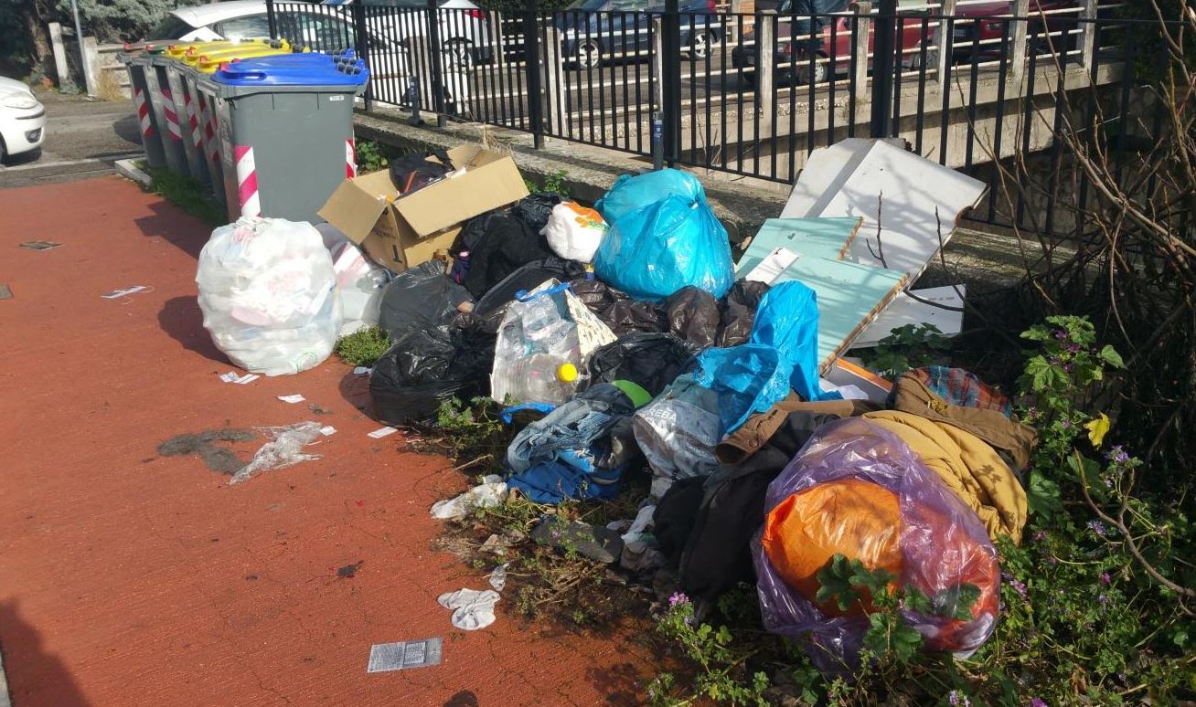 Accanto a dei bidoni, che forse non dovrebbero stare lì, sono stati gettati scatoloni e buste pieni di immondizia, pezzi di mobili, bottiglie di plastica, vestiti e chi più ne ha più ne metta.