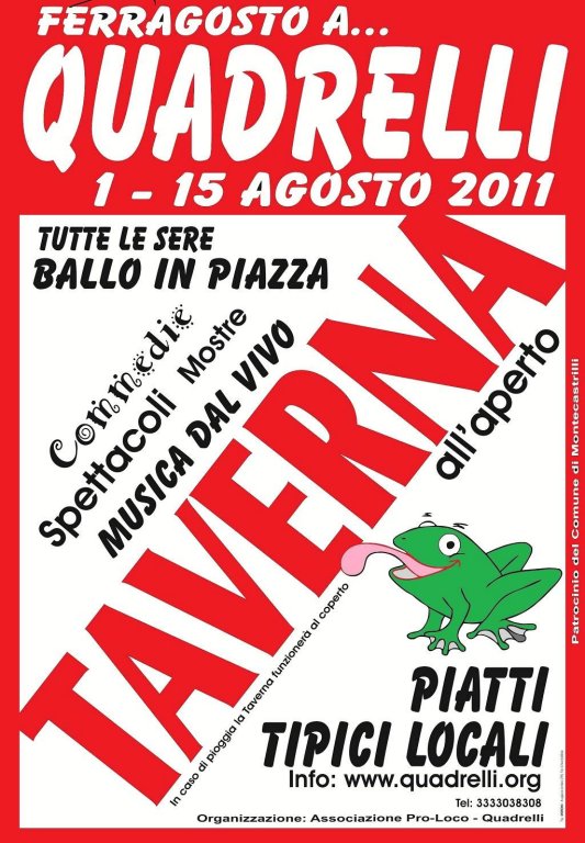 Dal 1 Agosto 2011 fino al 15 Agosto 2011 ritorna a Quadrelli, frazione del comune di Montecastrilli, l’evento “Ferragosto a Quadrelli“.