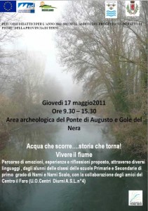 Giovedì 17 Maggio 2012 dalle ore 9:30 alle ore 15:30, in occasione dell’ “Umbria Water Festival“, si svolgerà presso l’Area archeologica del Ponte di Augusto e Gole del Nera l’evento “Vivere il fiume“.