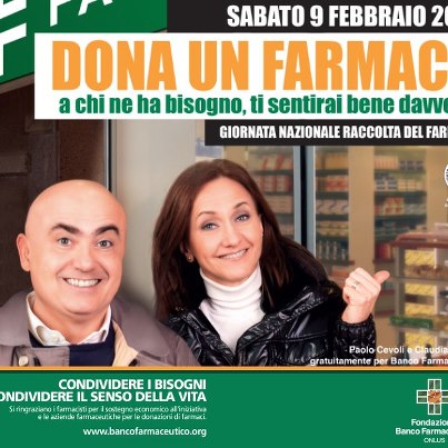 “Dona un farmaco a chi ne ha bisogno”. Sabato 9 febbraio, si terrà in tutta Italia la Giornata Nazionale di Raccolta del Farmaco. Recandosi nelle farmacie che espongono la locandina del Banco Farmaceutico, si potrà acquistare e donare un farmaco da automedicazione a chi oggi vive ai limiti della sussistenza (8 milioni 173 mila individui poveri, dati ISTAT 2011). L’iniziativa è organizzata dalla Fondazione Banco Farmaceutico Onlus in collaborazione con Federfarma e Compagnia delle Opere Sociali. La Fondazione ha lo scopo di aiutare le persone indigenti rispondendo al loro bisogno farmaceutico, attraverso la collaborazione con le realtà assistenziali che operano localmente. A beneficiare dell’iniziativa saranno le oltre 500.000 persone che quotidianamente vengono assistite dai 1.449 enti caritatevoli convenzionati con il Banco Farmaceutico in tutta Italia.