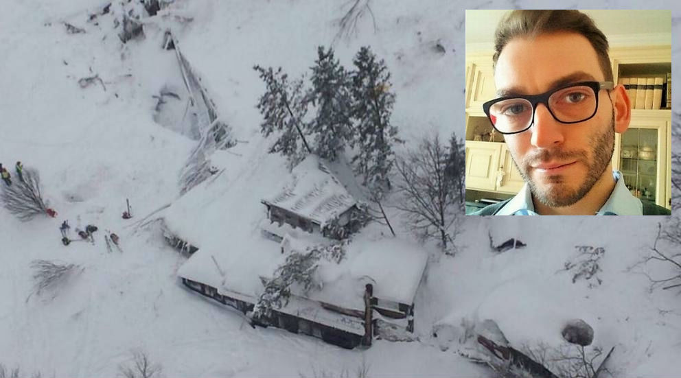 Aggiornamento ore 23,50: Purtroppo la giornata appena trascorsa non ha riservato le buone notizie in cui tutti sperano. L’angoscia e la speranza per le sorti del 33enne ternano dura a questo punto da tre giorni. I soccorritori, che continueranno le ricerche dovendo fronteggiare un accresciuto rischio di nuove valanghe nella zona, ritengono possibile vi siano ancora dei sopravvissuti. Secondo le parole del presidente eletto della Società Sistema 118, Mario Balzanelli, pubblicate su diversi organi di informazione, “una persona in buona salute, se ha la possibilità di ossigenarsi, può resistere in quelle condizioni anche 4-5 giorni. Ancora di più se può bere. Questo è possibile perché in questi casi si creano delle compartimentazioni d’aria, degli spazi ristretti che comunque garantiscono la respirazione. Invece se ci sono dei traumi gravi o delle malattie pregresse, cardiache o respiratorie, le chance ovviamente diminuiscono”.