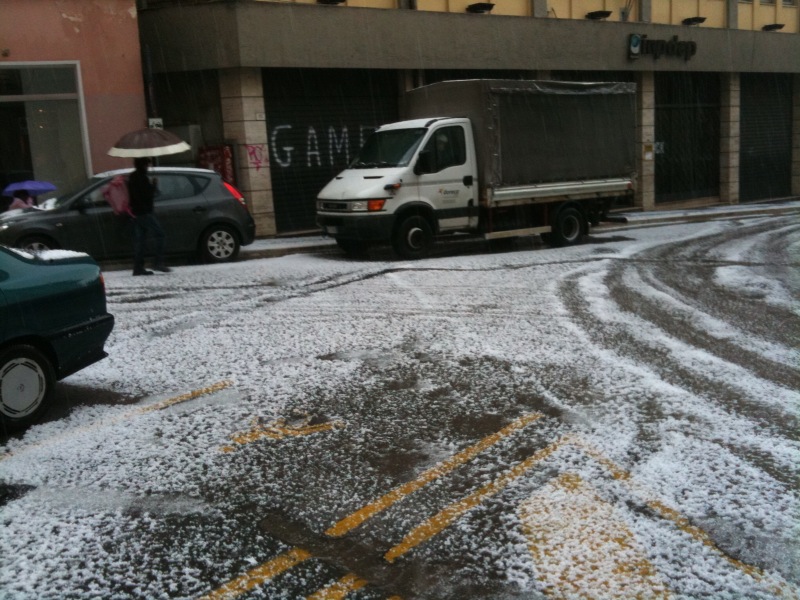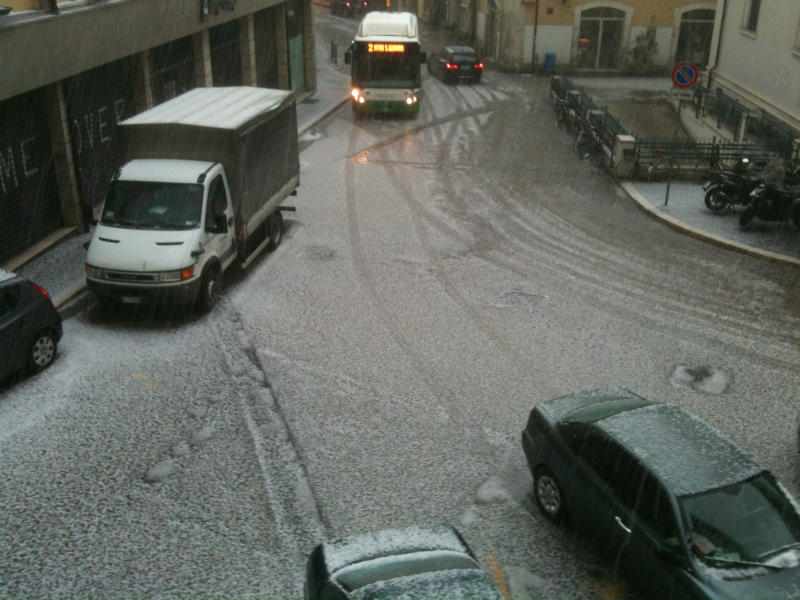 Meteo impazzito in piena primavera. Oggi pomeriggio, poco dopo le ore 16, su Terni si è abbattuta una violenta grandinata che in poco tempo ha imbiancato strade riempiendole di ghiaccio, provocato allagamenti e reso necessari diversi interventi dei pompieri, tra cui anche per un crollo di un solaio di un capannone.
