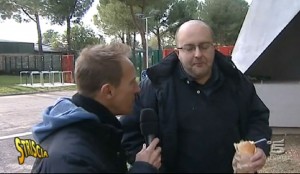 L’inviato di Striscia la Notizia, Cristiano Militello, martedì 30 ottobre in occasione del turno infrasettimanale di serie B, ha fatto visita a Terni, stazionando nelle vicinanze dell’ingresso dello stadio Liberati. L’autore della divertente e seguitissima rubrica “Striscia lo striscione” in cui mostra gli striscioni dei tifosi più particolari e tutte le curiosità più esilaranti della giornata calcistica, martedì ha intervistato un paio di tifosi della Ternana. Come sempre, Militello ha mandato in onda le interviste più divertenti, in cui l’intervistato equivoca o fa qualche affermazione strampalata.