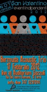 Venerdì 17 Febbraio 2012 alle ore 21:30, presso l’Auditorium Gazzoli di Terni, si terrà il concerto live dei “Bermuda Acoustic Trio“.