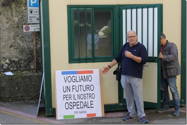 Marco Mercuri, il vicesindaco di Narni, ha iniziato lo sciopero della fame ad oltranza in attesa di risposte concrete da parte della Asl sul futuro dell’ospedale di Via dei Cappuccini. Prima di entrare nel prefabbricato ha detto: “Non ci accontenteremo di promesse formali ma vogliamo avere, nero su bianco, le scadenze per il posizionamento di quei servizi che erano stati promessi e mai installati. Non vogliamo cose impossibili ma solo la difesa del territorio della sua sanità e del suo futuro”.