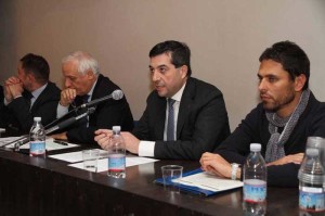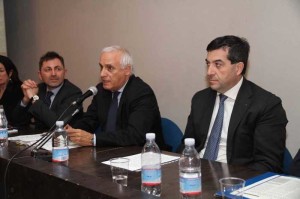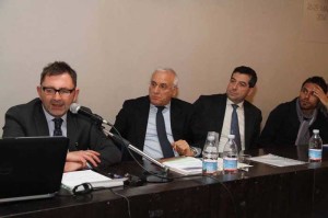 I TECNICI – Federico Nannurelli (Responsabile unità organizzativa lavori pubblici del Comune di Terni) ha illustrato tutti i dettagli del nuovo “pennone” in acciaio inox ultra-resistente che, dallo scorso 11 agosto, è tornato a svettare al centro del monumento. L’ago, alto 29 metri, è stato realizzato dal Tubificio di Terni con materiali messi a disposizione da Acciai Speciali Terni. Allo stesso modo Massimo Cresta (Responsabile servizio tecnico Asm Terni Spa) ha parlato degli interventi riguardanti l’illuminazione e la parte idraulica della fontana. L’Asm – rappresentata a Ferrara anche dal presidente Carlo Ottone – realizzerà un nuovo impianto di illuminazione a Led in grado di valorizzare il monumento, ottenendo al tempo stesso un consistente risparmio energetico. Per la parte idraulica, il tecnico ha annunciato la creazione di due circuiti distinti per le acque – quelle del catino e del mosaico – con l’installazione di un sistema di microfiltrazione per garantire il minor impatto possibile sulle superfici musive. A governare il tutto ci sarà un sistema di telecontrollo attivo 24 ore su 24, analogo a quello utilizzato per la gestione dell’acquedotto.