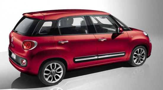 La fiancata della Fiat 500L è movimentata da passaruota piuttosto accentuati, ma dal profilo piatto, e da una estesa protezione in plastica con inserto cromato. Il tetto, che ricorda molto quello della Mini Countryman, sembra sospeso grazie tutti i montanti verniciati in nero. La coda, che appare simile a quella della Mini Paceman, è anch’essa tondeggiante: i fanali hanno la cornice cromata e al centro c’è il grande logo Fiat 500L. La casa annuncia una gamma propulsori che comprenderà inizialmente due benzina, il bicilindrico TwinAir da 85 CV e il 1.4 MultiAir 105 CV, e il turbodiesel 1.3 Multijet II da 95 CV.
