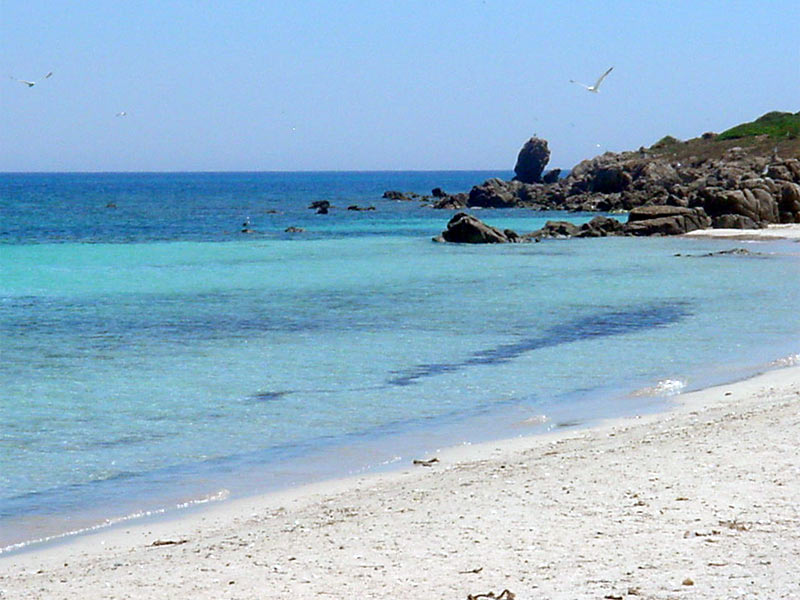 Da Putzu Idu si fa rotta verso l’Isola di Mal di Ventre, per scoprire la vegetazione selvatica, conigli in libertà e uccelli marini, unici abitanti del posto. Tante le rade e le spiaggette di Punta Libeccio dove il mare assume toni turchesi; a Cala del Nuraghe, lunga appena 20 metri, i fondali rocciosi, habitat ideale della fauna marina, sono una chicca per i sub. Basta seguire lo sterrato e lasciata l’auto, asciugamano e crema da alta protezione alla mano, oltre basse dune si svela l’abbacinante Mari Ermi, in quarzite bianca e rosa.