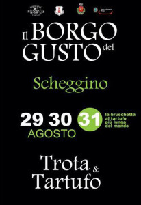 Ultimi preparativi per la prima edizione de “Il Borgo del Gusto – Trote & Tartufo”, in programma dal 29 al 31 agosto a Scheggino. Un evento gastronomico, e non solo, che si prefigge l’obiettivo di celebrare le bellezze naturalistiche locali ed i prodotti del territorio, in particolar modo l’accoppiata vincente tra la trota Fario ed il tartufo estivo.