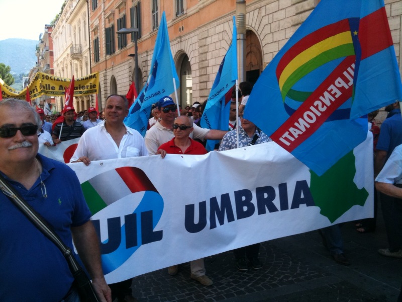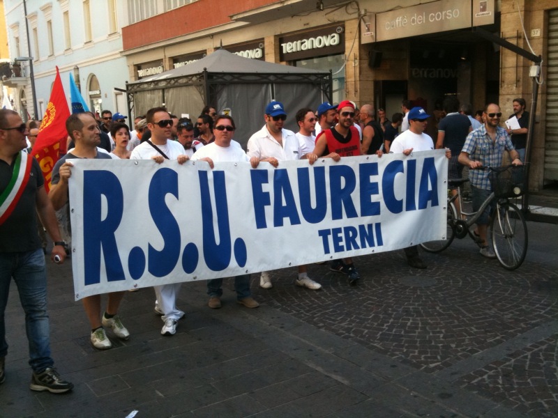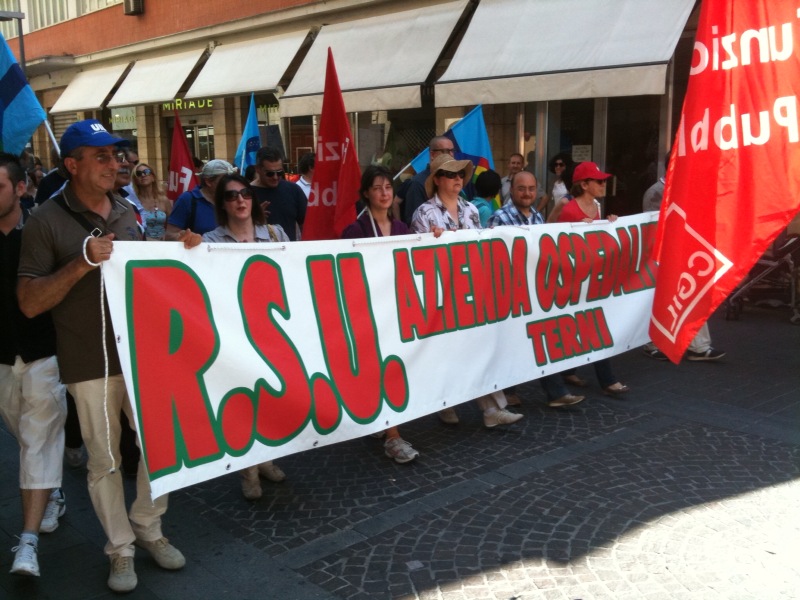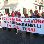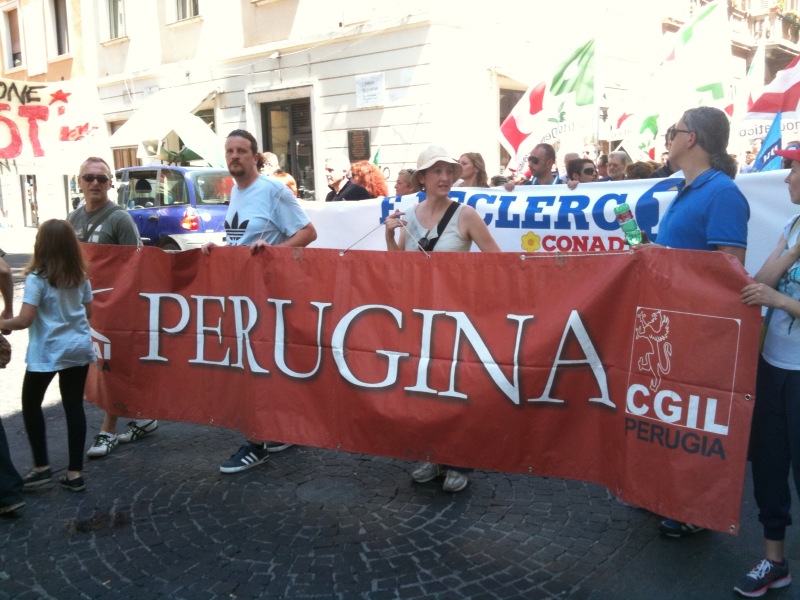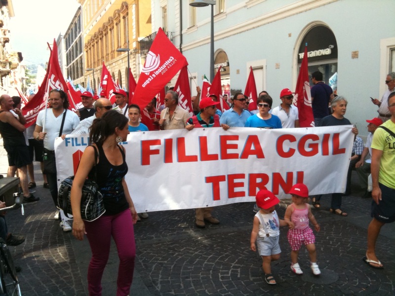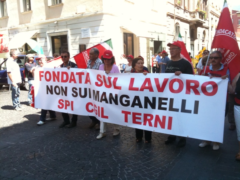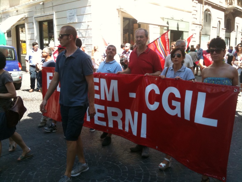 Il corteo partito da viale Brin è stato aperto da un grande striscione di Cgil, Cisl e Uil con la scritta “Lavoro è democrazia”. Tra i manifestanti in marcia, il segretario generale della Cgil Susanna Camusso e quelli confederali di Cisl e Uil, Pietro Cerritto e Guglielmo Loy; presenti anche la presidente della Regione, Catiuscia Marini, il sindaco di Terni Leopoldo Di Girolamo e molti altri rappresentati delle istituzioni locali; con loro, tra gli altri, anche Massimo D’Alema e Paolo Ferrero.