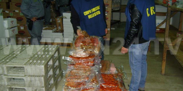 Nello specifico sono stati sequestrati 30 chili di bastoncini di granchio, 84 chili di petto di pollo brasilia, 18 chili di gamberoni indonesiani, 8 chili di tubi di totano Spagna, 12,5 chili di patate, 39 chili di anatra Germania e 90,8 chili di gamberetti dell’Ecuador. Oltre al sequestro della merce, è stata effettuata una sanzione amministrativa di 7 mila euro a carico della ditta e dei trasportatori.