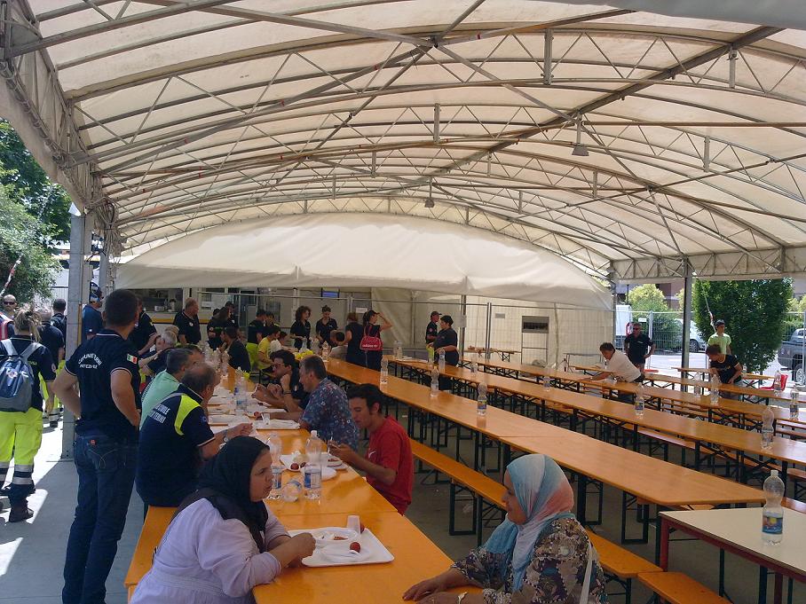 Nei giorni scorsi la Protezione civile, aggregandosi all’8° Contingente regionale, ha condotto a San Prospero un gruppo di studenti e professori dell’istituto Casagrande di Terni, replicando l’esperienza dell’Aquila che li aveva visti coinvolti per diversi mesi nella preparazione dei pasti agli sfollati del terremoto. Nel campo, che accoglie circa 310 evacuati, saranno preparati dal personale scolastico del Casagrande circa 350 pasti al giorno che verranno distribuiti nella mensa, con una superficie di 220 metri quadri, messa a disposizione dalla Provincia. Una struttura già utilizzata nel terremoto dell’Aquila.