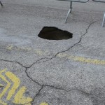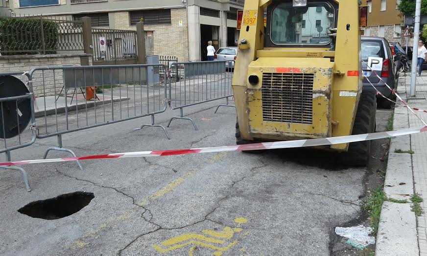Ne avevamo parlato a fine maggio ed erano già cinque giorni che quel buco era lì, in mezzo alla strada. Oggi i giorni sono diventati 21 e chi passa in via Francesco Rismondo, non lontano dall’incrocio con via Francesco Baracca si trova davanti ancora lo stesso desolante spettacolo: una voragine transennata.