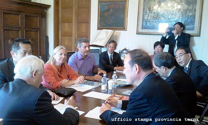 La Provincia dello Zhejiang (oltre 54milioni e mezzo di abitanti), è stato reso noto dalla delegazione, per la prima volta in provincia di Terni, si colloca al quarto posto in Cina per prodotto interno lordo nonostante abbia una superficie più piccola della penisola italiana. Il presidente ha ringraziato per la visita e si è detto onorato della presenza di una così importante e qualificata delegazione istituzionale. Durante l’incontro l’amministrazione ha illustrato le risorse turistiche e culturali della provincia di Terni, tra cui la Cascata delle Marmore, il duomo di Orvieto, le bellezze naturalistiche e paesaggistiche e le eccellenze artistiche, archeologiche e culturali.
