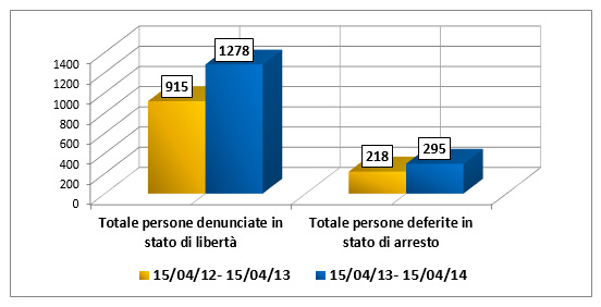 E’ stato spiegato che l’attività di controllo del territorio “è stata implementata nell’arco delle 24 ore con l’impiego di un maggior numero di equipaggi di tutte le articolazioni della polizia di Stato presenti in provincia, permettendo così un incremento del 25% del numero delle persone controllate nel corso dell’ultimo anno. L’attività di prevenzione si è indirizzata con particolare efficacia anche nei confronti di numerosi pregiudicati provenienti da altre province, rimpatriati con foglio di via per il loro comune di residenza (+39%), e delle persone ammonite per stalking”.