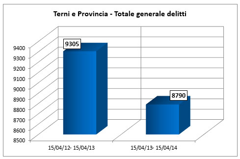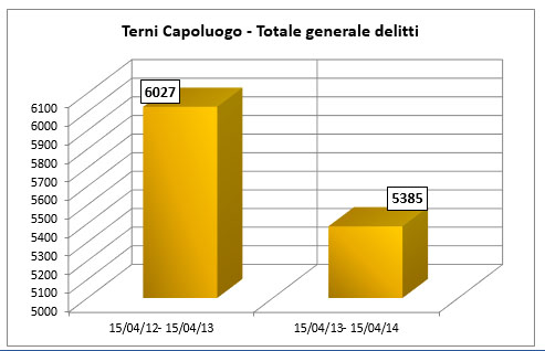 Nel corso della cerimonia del 162esimo anniversario della fondazione della polizia di Stato, la questura di Terni ha tracciato un bilancio degli ultimi 12 mesi di attività. Rispetto all’anno precedente si è registrata una diminuzione dei reati: calati del 6% per nell’intera provincia e dell’11% nella città di Terni. Di contro sono aumentate le denunce e gli arresti.