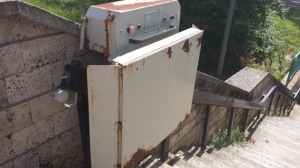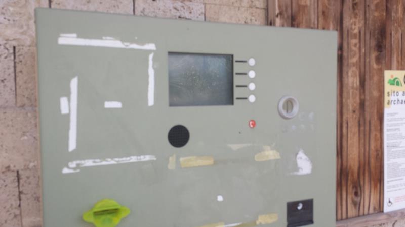 Il parcheggio a monte del sito accoglie i turisti in uno squallore che ha pochi uguali in Italia: erba alta, strumentazione elettrica abbandonata, saliscendi per disabili inutilizzabile e arrugginito, nessuna decorazione alle pareti del sottopasso; nessun infopoint a parte un vecchio cartello; nessuno che ti accolga e che ti faccia sentire in un luogo incantevole e pieno di storia.