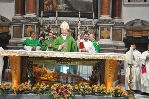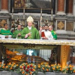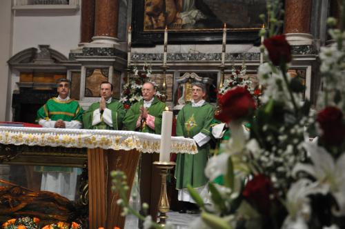 La celebrazione è stata presieduta dall’amministratore apostolico della diocesi ternana monsignor Ernesto Vecchi; presente monsignor Carlos Simon Vazquez, sottosegretario del Pontificio consiglio per la famiglia; assente invece, come detto, Vincenzo Paglia: “E’ stato trattenuto a Roma dall’influenza”.