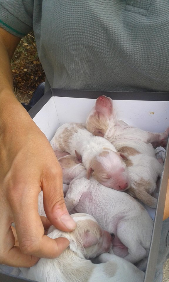 Cinque piccoli cuccioli di cane abbandonati in una scatola di cartone, sotto il sole e senza acqua, lungo la strada che costeggia il cimitero di Terni. I poveri animali sono stati trovati e salvati dagli agenti della forestale che hanno anche rintracciato e denunciato i proprietari: una coppia di Stroncone che dovrà rispondere del reato di abbandono di animali.