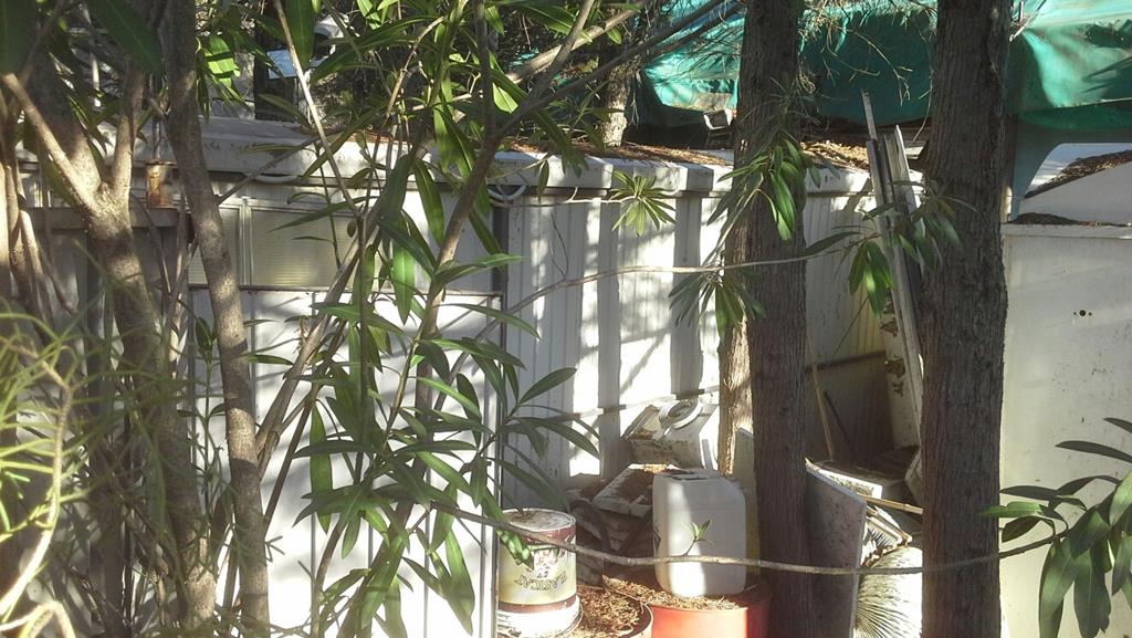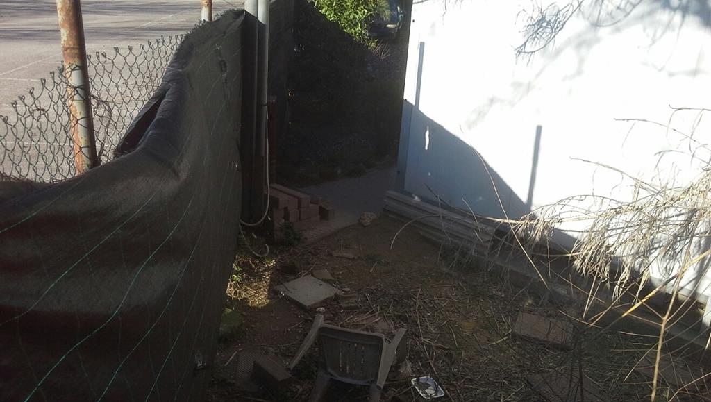 Erba alta, ruggine e tracce di vari tentativi di effrazione; è facile sporgersi dalla recinzione per avere idea dell’abbandono della struttura.