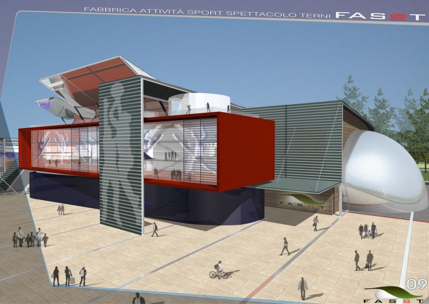 Il palazzetto di Raffaelli. Basta ricordare il mirabolante e futuristico progetto che l’Amministrazione comunale Raffaelli aveva fatto redigere e di cui non se ne è fatto nulla. Era agosto 2008 quando fu ufficialmente annunciato con dovizia di particolari (costi intorno ai 20 milioni di euro) e la Giunta si ripromise di parlarne dopo la pausa ferragostana. Da allora di ferragosto se ne sono passati 5 e di quel progetto restano soltanto i promettenti rendering, eccone qualcuno: