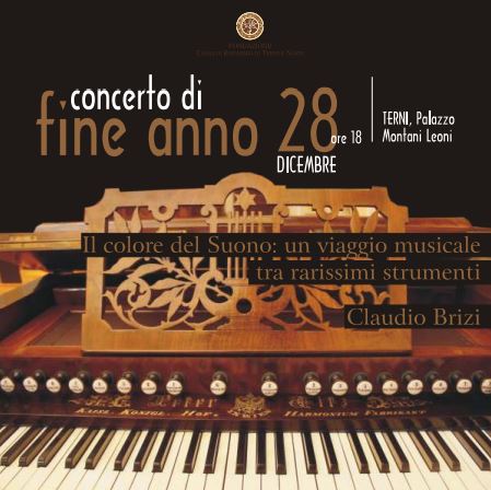 Domenica 28 dicembre 2014 alle ore 18 nella sala Paolo Candelori di palazzo Montani Leoni si terrà il concerto di fine anno organizzato dalla Fondazione Cassa di Rispamio di Terni e Narni. “Il colore del suono: un viaggio musicale tra rarissimi strumenti”, quello che il talentuoso maestro Claudio Brizi percorrerà sulle note di Pachelbel, Pasquini, Zipoli, Beethoven, Mozart ed altri. Accompagnato dai suoi preziosi strumenti musicali, il claviorgano, l’harmonium-celesta e l’harmonium a prolongement, il maestro Brizi concederà quindi alla città di Terni una ricca rassegna musicale con la partecipazione di Luigi Vincenzo.