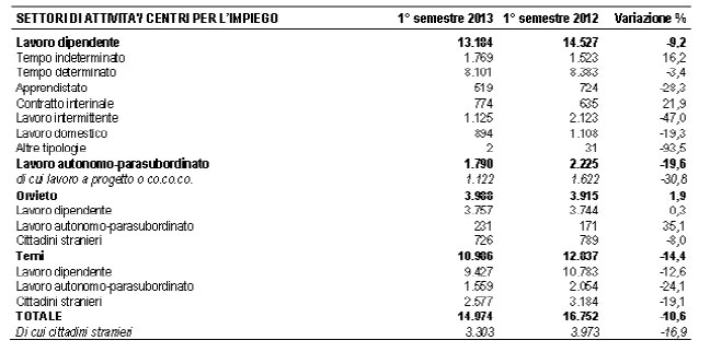 I rapporti di lavoro attivati nel primo semestre del 2013 sono diminuiti rispetto allo stesso semestre del 2012; il calo è più marcato con riferimento ai lavoratori stranieri e riguarda le forme di lavoro stabile. Parallelamente, aumentano in maniera sensibile i rapporti di lavoro precari, soprattutto nella forma del lavoro intermittente. Le conseguenti difficoltà di inserimento lavorativo determinano una crescita del numero degli iscritti disoccupati.