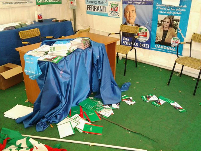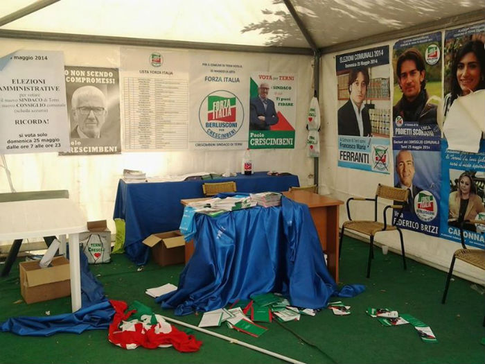 Ieri era stato vandalizzato un gazebo del centrodestra. Nella notte alcune persone erano entrate all’interno ed avevano staccato manifesti e buttato all’aria quanto più possibile.