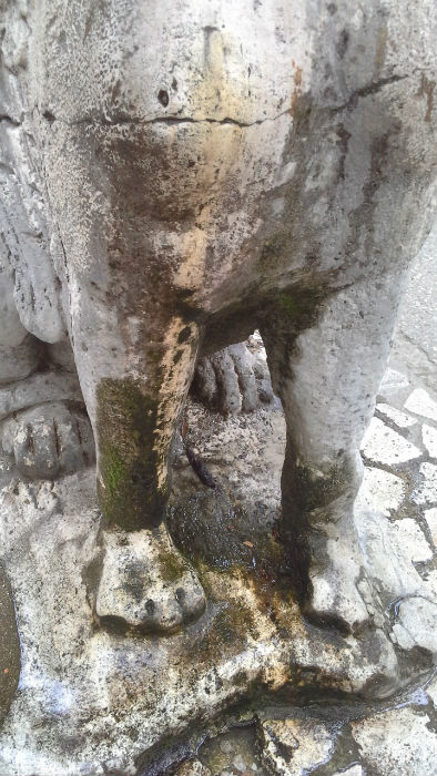 Scrive Rossi: “Dopo le tante reazioni di sdegno, le prese di posizione, individuato il genio esecutore (una ditta di termoidraulica che non ci pensò due volte a spaccare la schiena della statua per farci passare un tubo) e sopratutto il responsabile amministrativo che autorizzò questo scempio, l’amministrazione comunale per bocca dell’ assessore ai Lavori pubblici si precipitò a dichiararsi intenzionata a riparare in qualche modo, per quel che è ormai possibile, ad un intervento che ben dimostrava totale incapacità, menefreghismo, superficialità e la più becera ignoranza verso l’importanza di quel bene”.