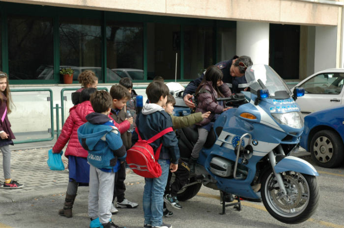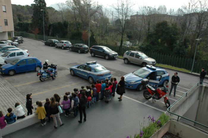 I bambini, accompagnati dalla insegnanti Lorella Marino, Simonetta Giulivi e Sabrina Cipriani, sono stati accolti dagli Assistenti Capo Paola Morbidini e Maddalena Bolli che li hanno accompagnati nei locali della questura: il poligono di tiro, le celle di sicurezza, gli uffici della polizia scientifica e della polizia stradale e la sala operativa. I bambini hanno seguito tutto con interesse e curiosità e il loro entusiasmo è salito alle stelle quando sono potuti salire sulle auto e sulle moto della polizia.
