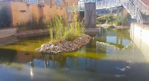 Il laghetto artificiale è stato inserito in un piazzale pubblico e come spesso accade ad una bella iniziativa non è mai seguita una regolare manutenzione, lasciando in una zona frequentata da persone da ogni età più che un laghetto una vasca d’acqua putrida, stagnante e di colore verde, con i rifiuti a galleggiare al posto delle più tipiche papere.
