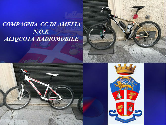 Due furti di biciclette, avvenuti in momenti diversi e in luoghi diversi: nei giorni scorsi i carabinieri di Terni ed Amelia hanno recuperato e restituito i mezzi ai legittimi proprietari. Nei guai sono finiti due giovani, denunciati per ricettazione: un 19enne ternano e un17enne rumeno.